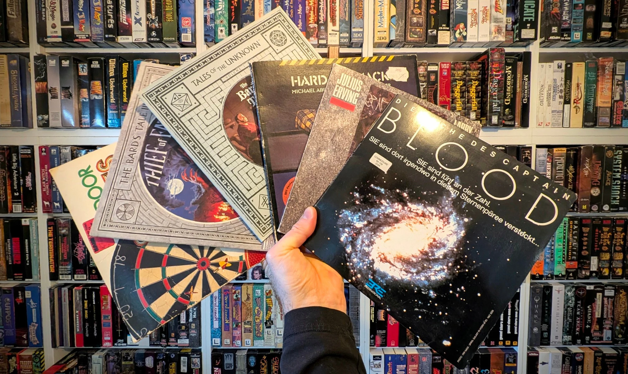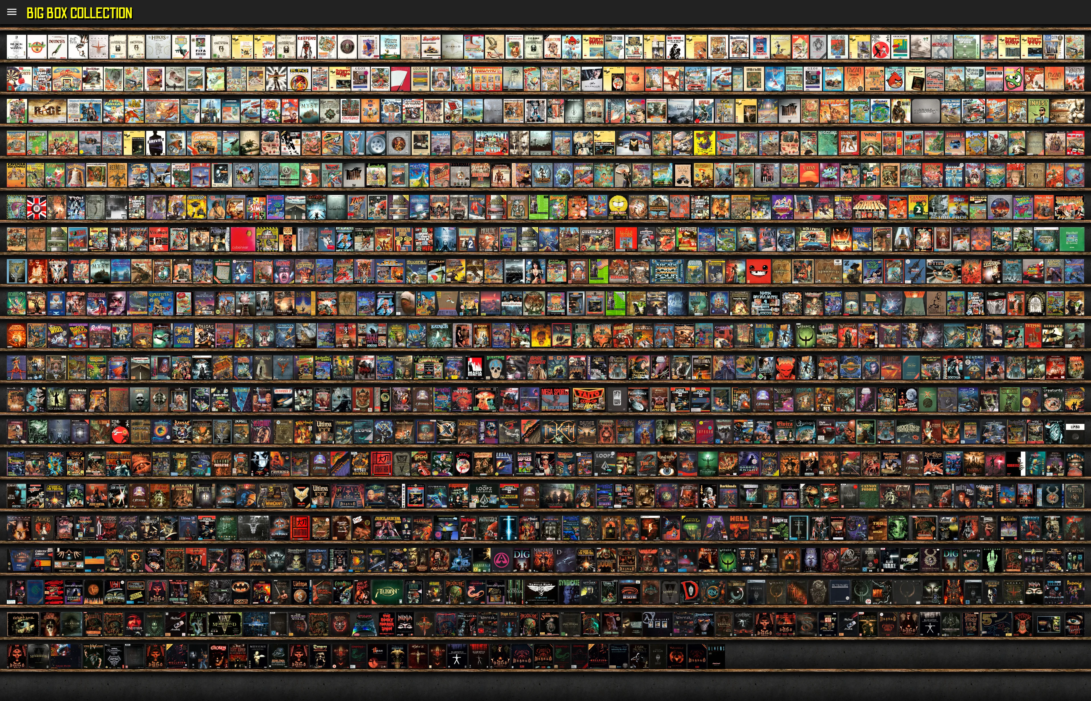 In regard of fidelity, 0 out of the 926 boxes have all six sides scanned. I'm working on adding more but this comes down to finding the time needed for scanning and editing. There's also 73 boxes with a gatefold cover that can be flipped open by double-clicking the box. Also, 135 boxes do have specific textures for their reflectiveness. It's a subtl effect but IMHO worth all the work, just look at Morrowind or Beneath a Steel Sky.