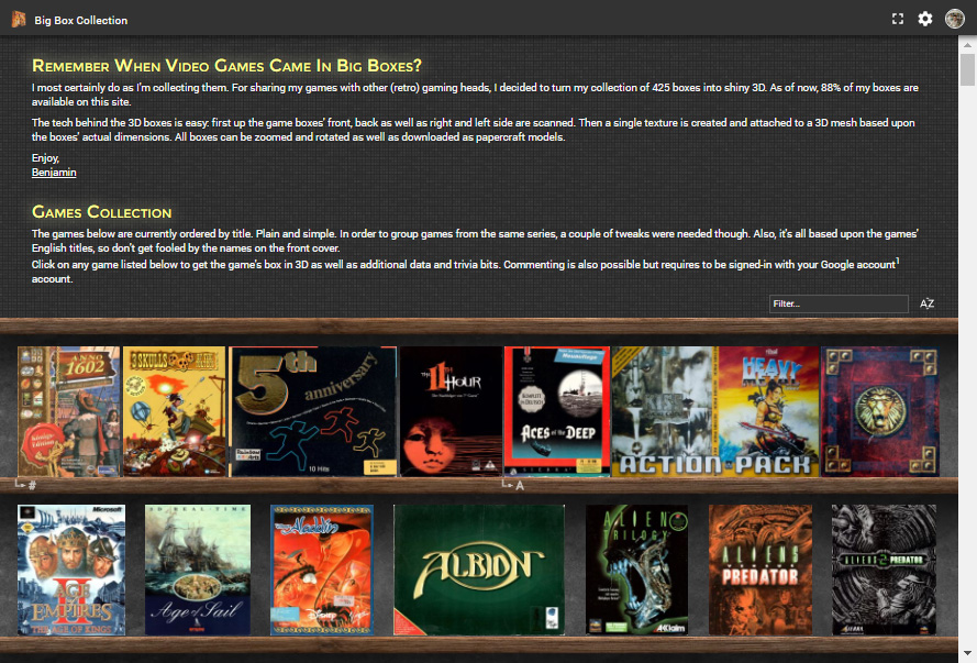 I most certainly do as I'm collecting them. For sharing my games with other (retro) gaming heads, I decided to turn all of the 926 boxes* filing up my NerdWall™ into shiny 3D!