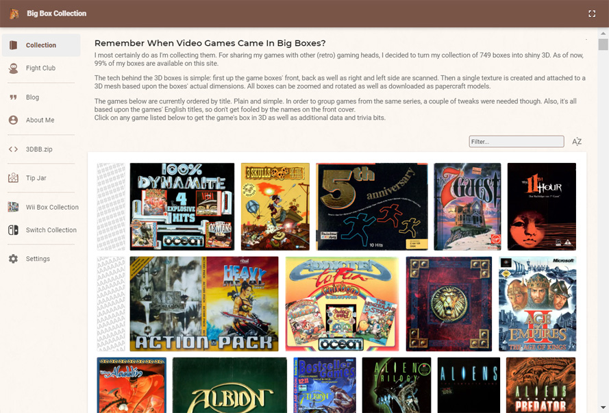 BigBoxCollection.com has now over 1,000 games available as high-res 3D models waiting to be explored