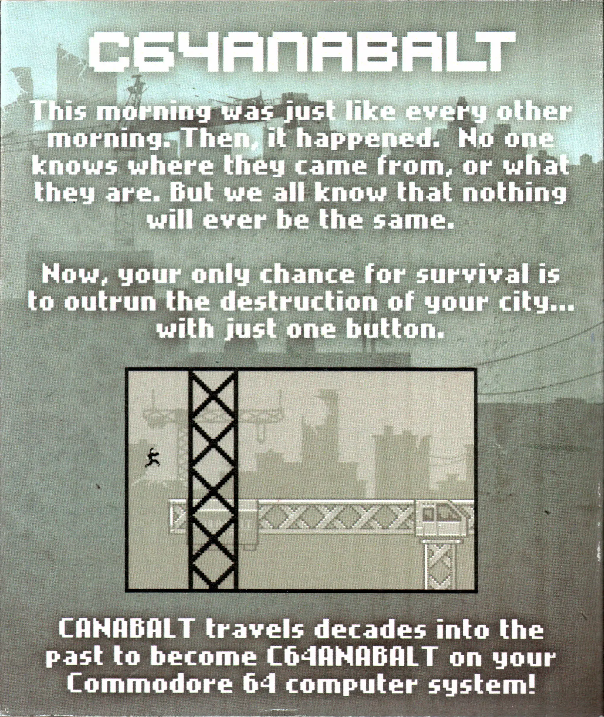 Photo of the content of C64anabalt (2011, C64, Worldwide); developed by RGCD.DEV Ltd, published by RGCD.DEV Ltd; Hi-res 3D box available at https://bigboxcollection.com